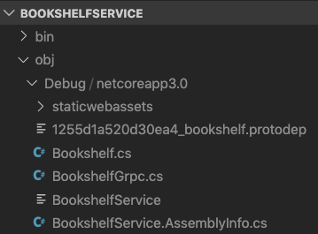 As you can see, we have defined two messages (NewBookRequest and NewBookReply) and a service (BookService). The Protocol Buffer tool will generate the messages as .NET types and the service as an abstract base class. You’ll find the generated source file in the obj folder.